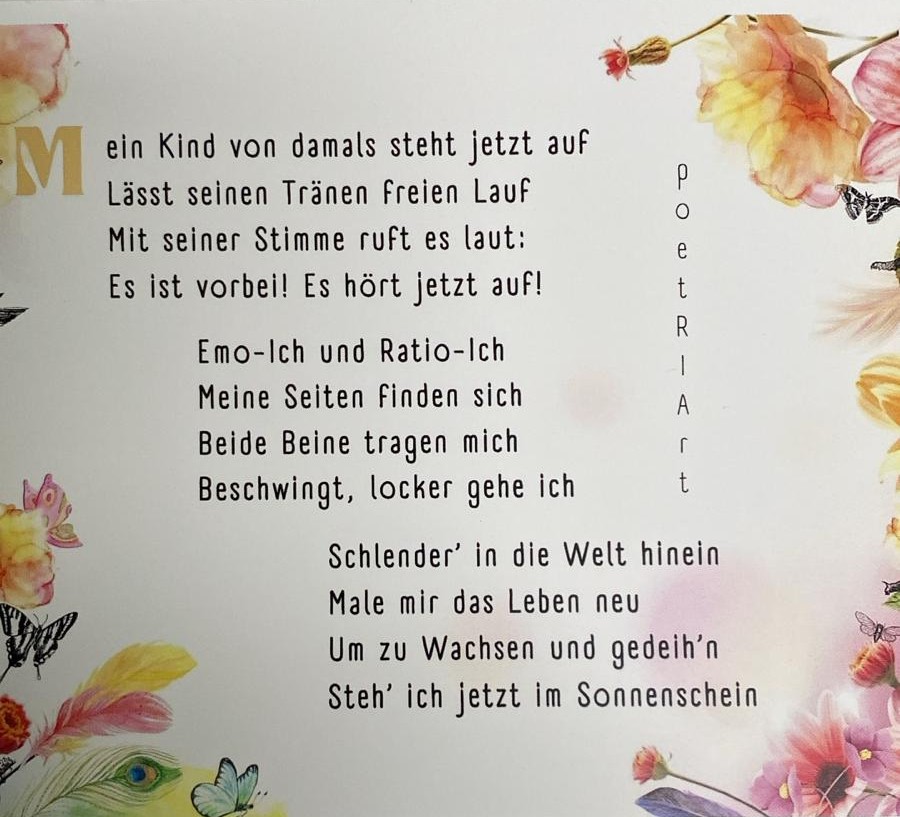 Ein Gedicht als Rezension. Und ein wunderschönes Zeichen dafür, dass Heilung möglich ist, wenn Körper und Gefühl wieder miteinander sprechen dürfen.